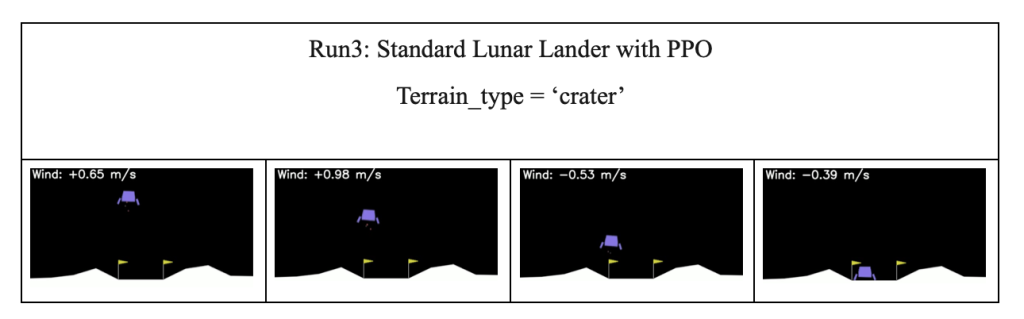 This research presents a complete study of deep reinforcement learning advancements in lunar landing scenarios, developing from a basic PPO implementation to an enhanced multi-feature environment. The impact of wind disturbances, terrain variations, and planetary obstacles on landing performance is systematically introduced and analyzed. Through careful parameter tuning and environmental modifications, I have demonstrated how PPO agents can successfully navigate complex scenarios while maintaining precision landing between designated flags and avoiding celestial obstacles.