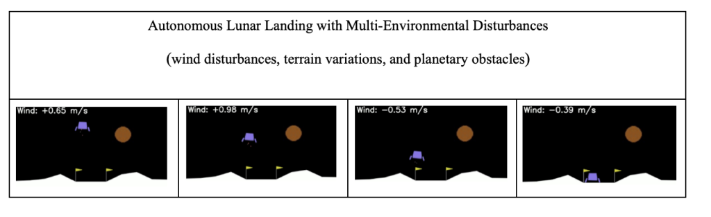 This research successfully demonstrates the evolution from basic lunar landing capabilities to sophisticated multi-environmental navigation and landing systems. Through systematic enhancement of environmental complexity and careful parameter optimization, we achieved robust performance in challenging scenarios while maintaining precision landing requirements.