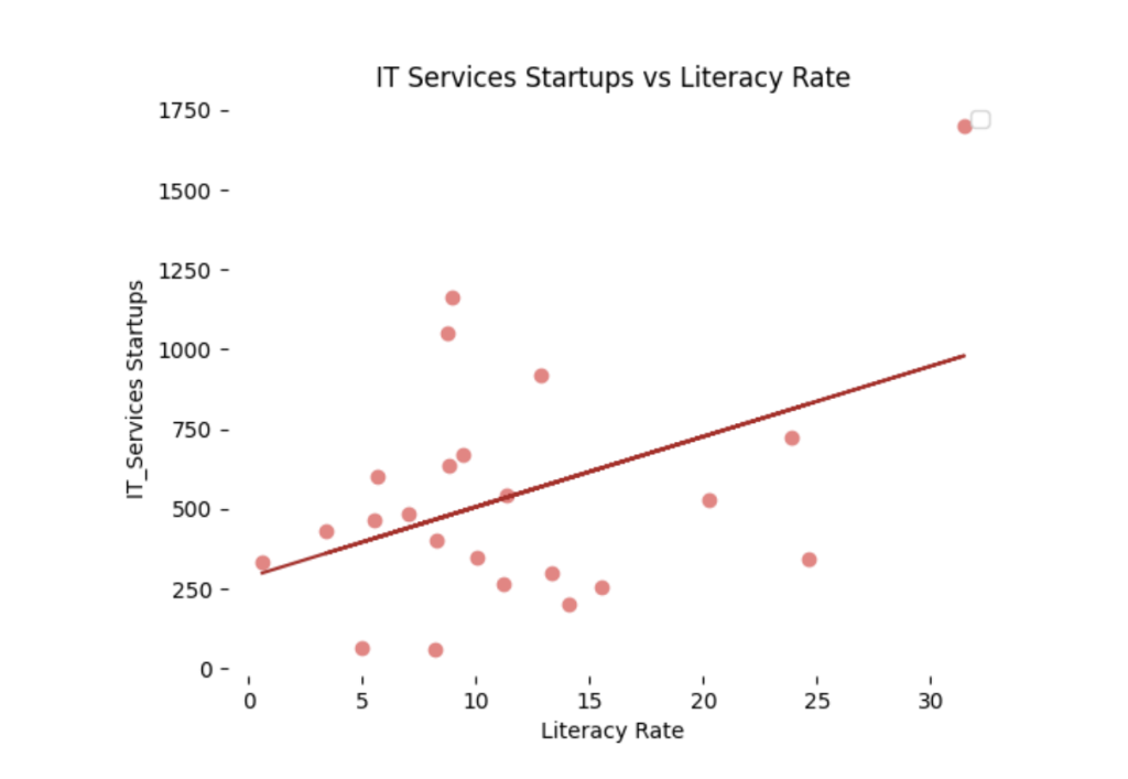 Figure 8: Linear regression comparing the Literacy Rate to the Number of IT Services Startups in a region