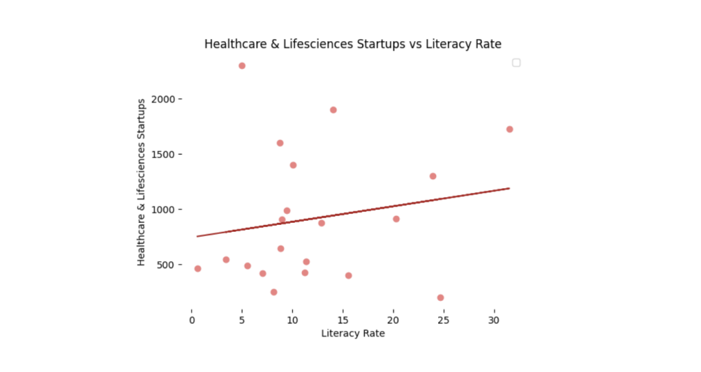 iv. Startups in the Healthcare and Lifesciences Sector vs Literacy Rate