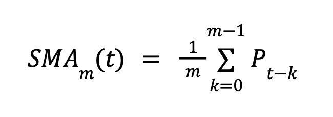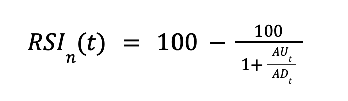 Where AUt and ADt are the exponentially smoothed average gains and losses over n days. The SMA is calculated as: