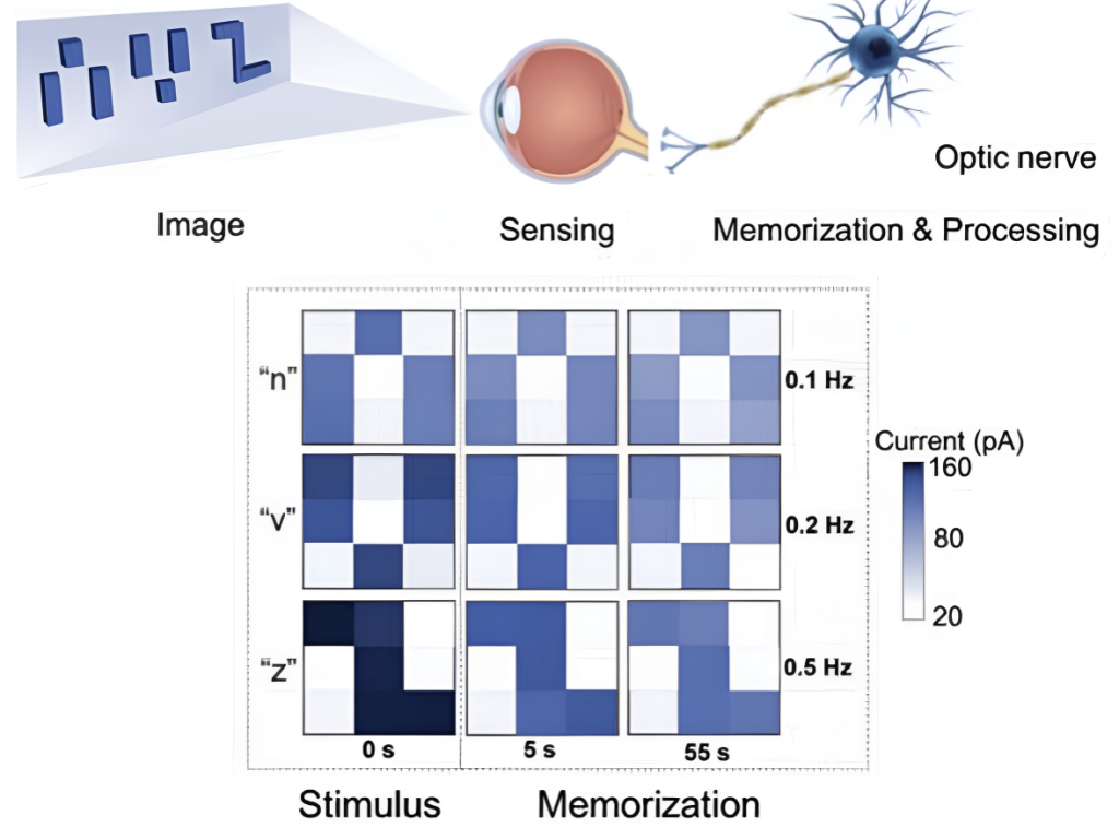 These devices utilize organic materials such as TIPS-pentacene to develop flexible, broadband phototransistors capable of mimicking biological visual sensors.It responds to a broad range of light wavelengths, similar to the human eye. The device also tries to mimic how neurons may react to light, in order to handle visual sensing and memory tasks efficiently (Zhang et al., 2023).